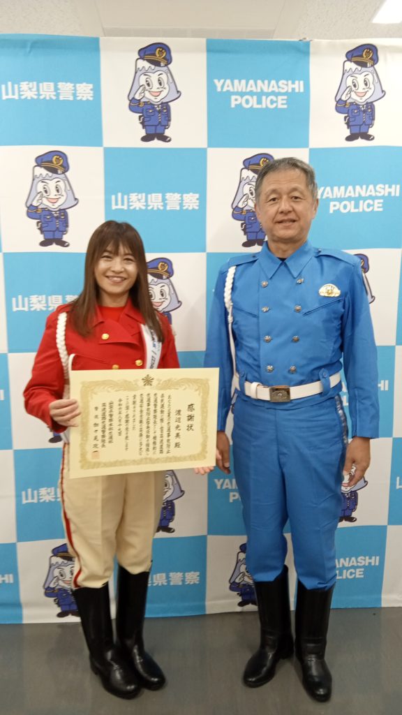 山梨県警察本部『1日高速道路交通警察隊長』に委嘱され感謝状も頂きました!