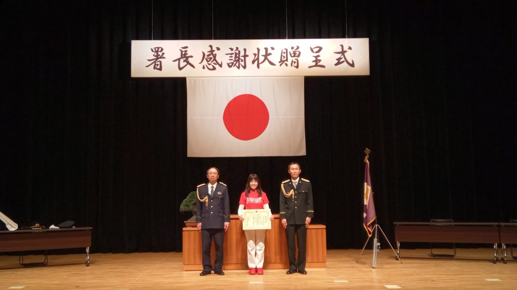 日頃から警察行政に深い理解と関心を寄せ、警察活動に積極的支援や協力をし、安全で平穏な地域社会の確立と安心して生活できる地域づくりに多大な貢献をしたと評価して頂きました。