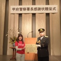 有り難いことに、ふるさと山梨の峡南を守る「南部警察署」署長より感謝状を頂きました!