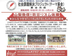 ふるさと山梨のみなさま、「赤い羽根共同募金 社会課題解決プロジェクト~『いつも(日常時)』も『もしも(非常時)』も自分と大切な人の命を守る防災~」にご協力いただき有り難うございました。